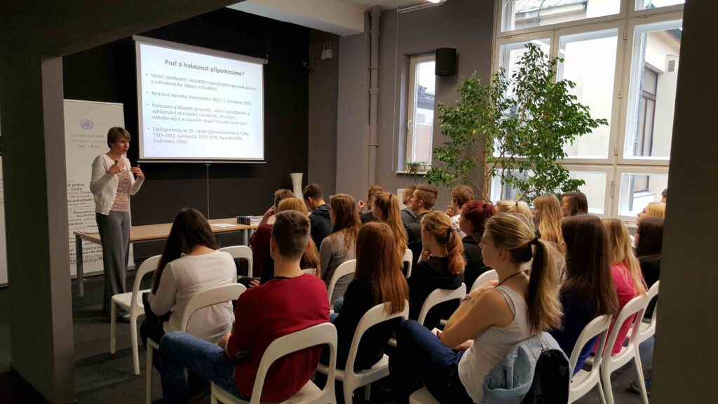 Ve středu 27. 1. 2016 navštívila třída 2.C Informační centrum OSN v Praze, vyslechla si přednášku na téma holocaust a zhlédla film Poslední let Petra Ginze. Tento vzdělávací program OSN se konal k Mezinárodnímu dni památky obětí holocaustu.