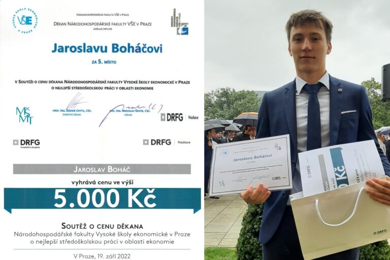 Náš žák Jaroslava Boháče se umístil mezi top 10 studenty v Soutěži o cenu děkana Národohospodářské fakulty Vysoké školy ekonomické v Praze o nejlepší středoškolskou ...