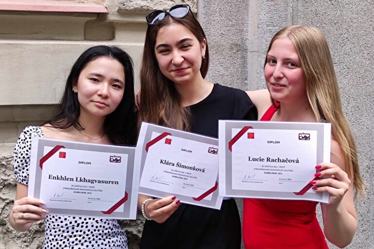 Po červnovém úspěchu v soutěži Kubeliáda 2022 vybojovaly Enkhlen Lkhgavasuren, Klára Šimonková a Lucie Rachačová opět první příčku v krajském kole soutěže Ekonomický tým 2022, ...