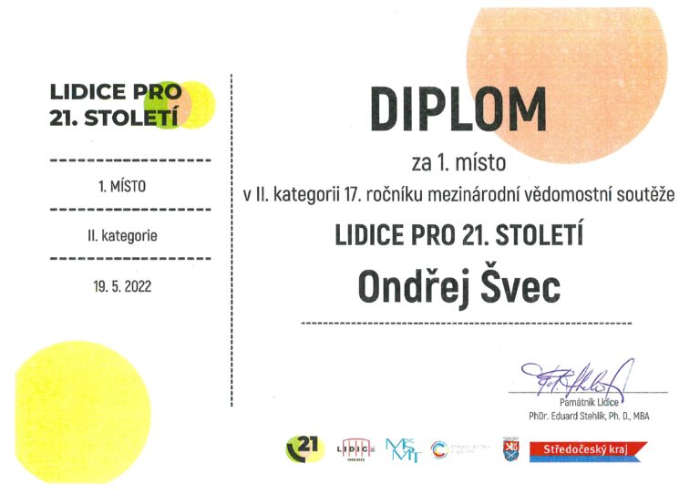 7. ročník mezinárodní vědomostní soutěže LIDICE PRO 21. STOLETÍ vyhrál žák naší školy Ondřej Švec. Současně získal také cenu poroty za literární esej. Ondřejovi velmi ...